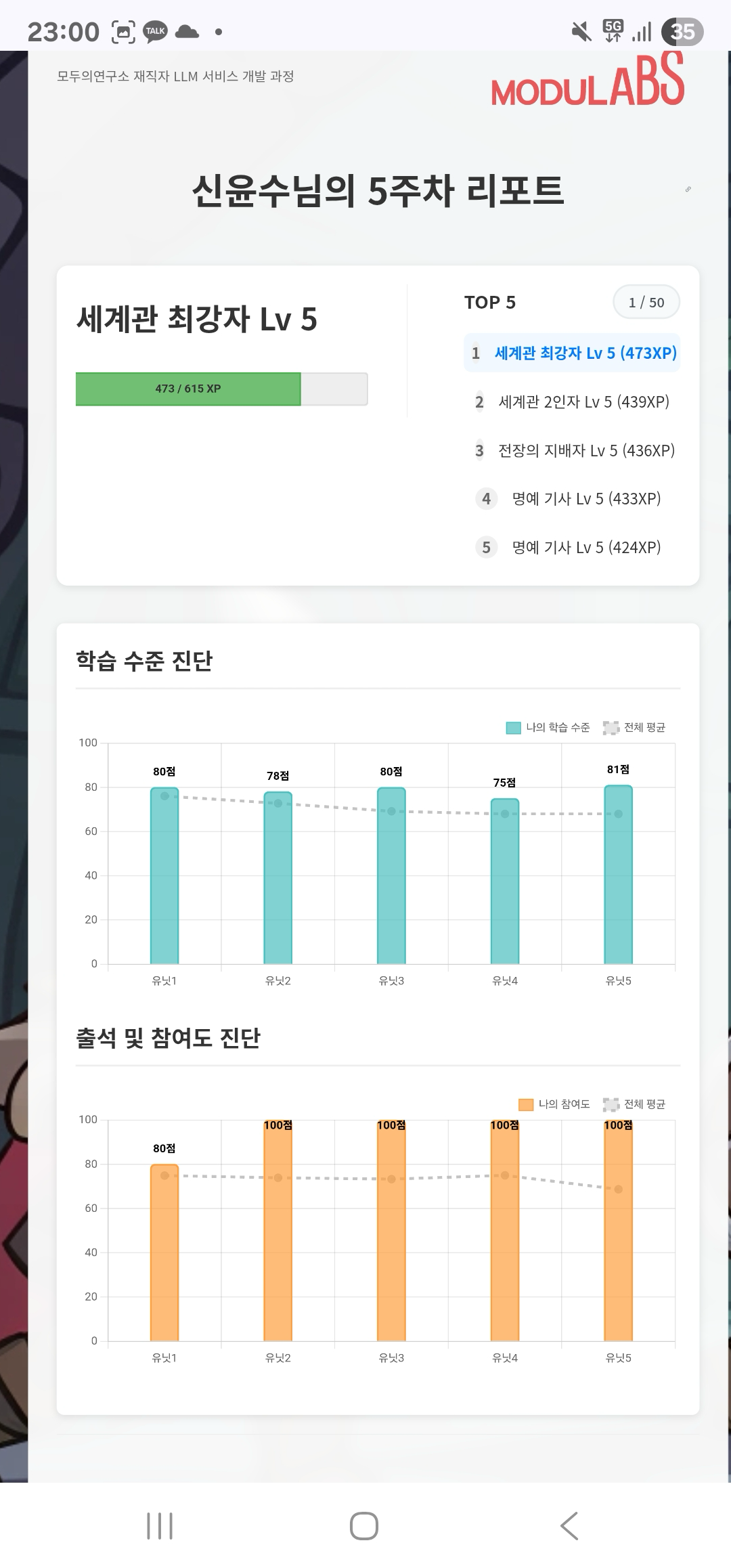저는 수업시간 외에 llm을 따로 공부할 여력이 없으니 수업시간만이라도 열심히 하자는 마인드였는데, 점수로 인정받은거같아 기분은 좋네요.